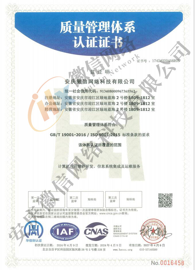 質(zhì)量管理體系證書