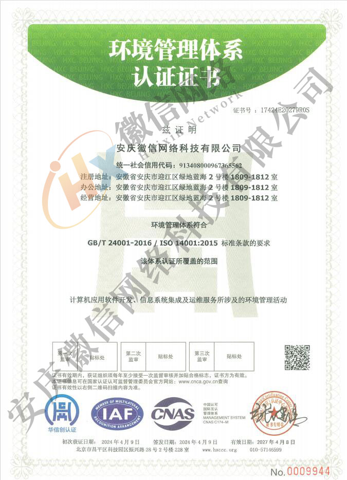 環(huán)境管理體系證書