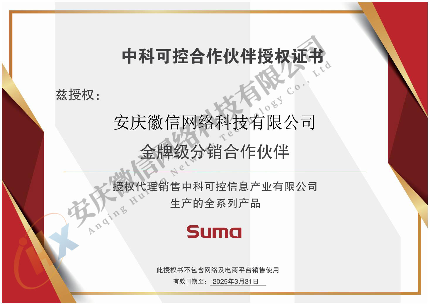 中科可控合作伙伴授權(quán)證書